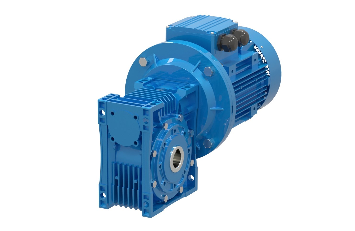 The input and output shafts of the E-series worm gearboxes are perpendicular to each other. The worm is made of steel and the gears are made of bronze. They can be mounted to the driven machine via feet, flanges or torque arms on the gearbox.